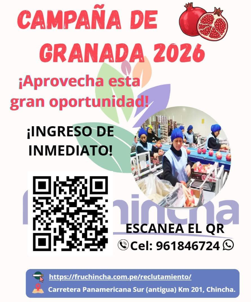 🔴 Ingreso inmediato para labores en planta durante la campaña de granada 2026.